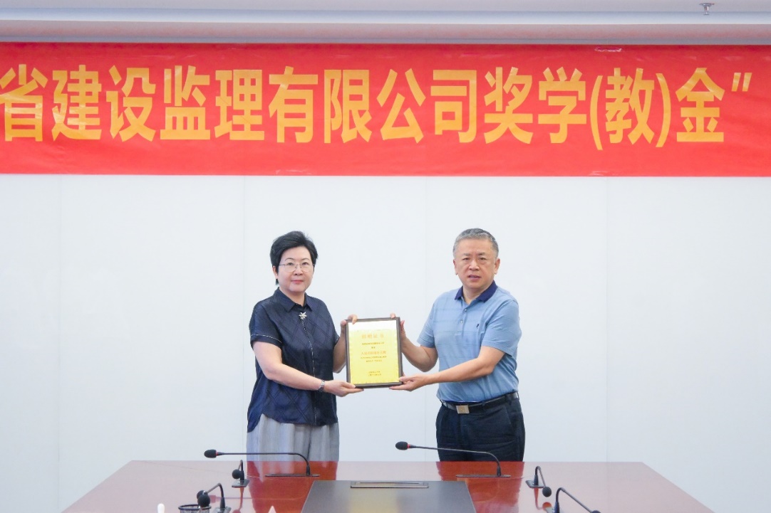 朱仁芳代表安徽监理向学校捐赠人民币60万元,在学校设立“安徽省建设监理有限公司奖学(教)金”,吴玉程代表学校向安徽监理颁发了捐赠证书。吴玉程、朱仁芳代表双方签署《beat365平台唯一官网与安徽省建设监理有限公司战略合作协议》。