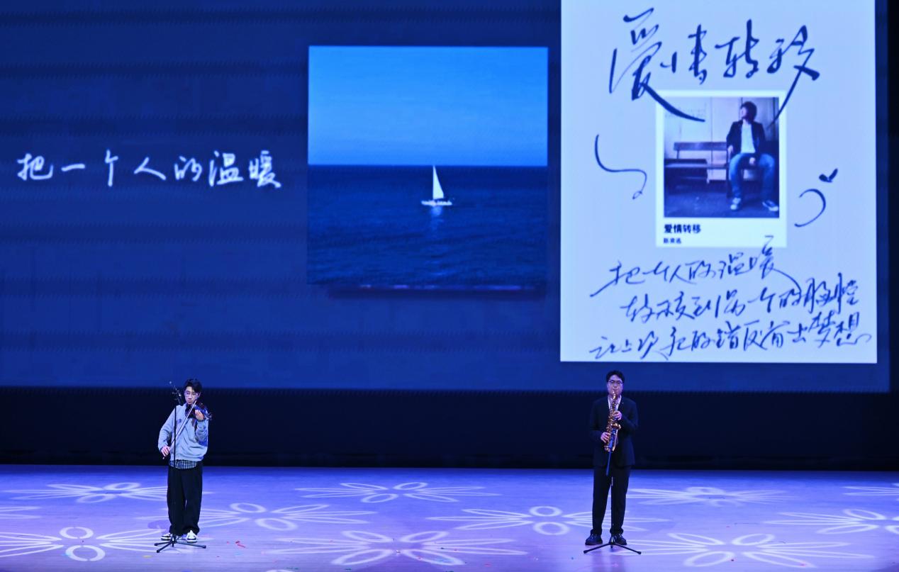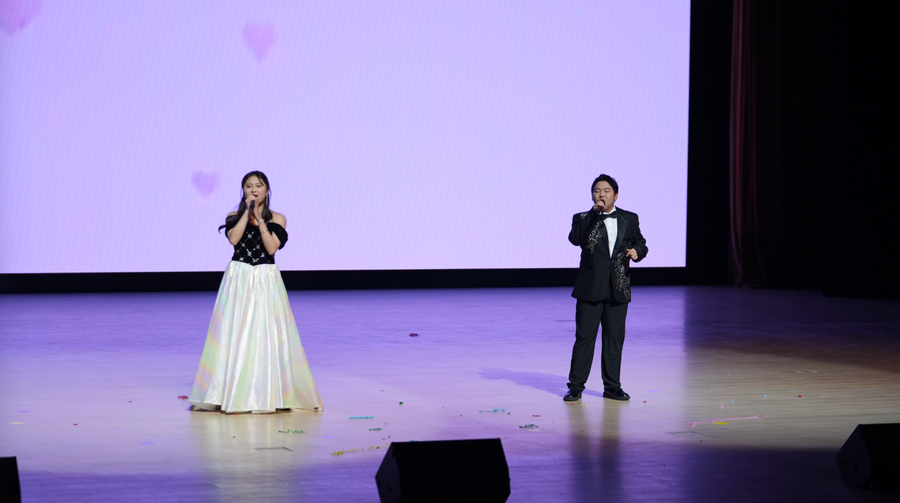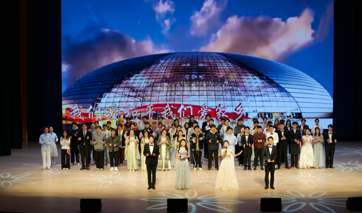 全体演员与现场师生的大合唱《歌唱祖国》将晚会推向高潮,熟悉的旋律响彻全场,真挚的情感浸润人心,晚会随之圆满落幕。